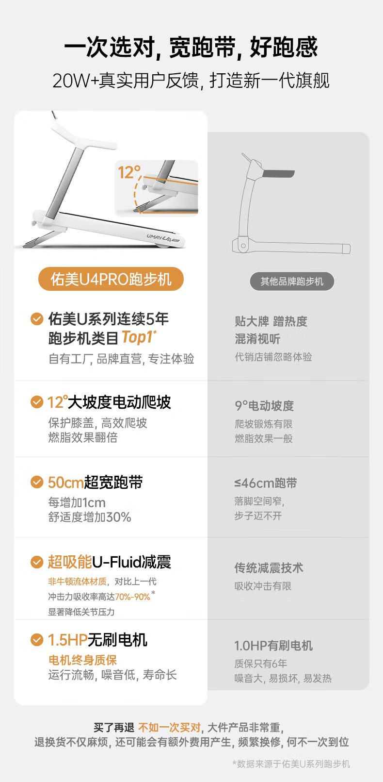 佑美U4Pro跑步机家庭用电动爬坡登山全折叠安静低音走步机健身房器材