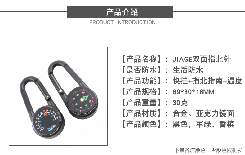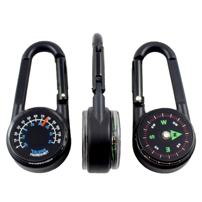 JIAGE嘉格户外高精度快挂指北针指南针带温度计+挂钩充液稳定强磁旅游背包多功能金属罗盘钥匙扣 黑色