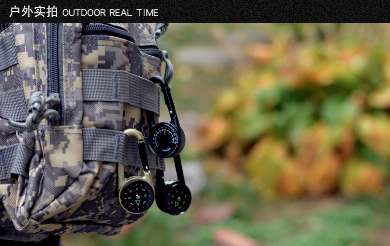 迪紫兔户外指南针高精度便携随身指北针多功能锌合金登山快挂扣越野运动 户外指南针 黑红