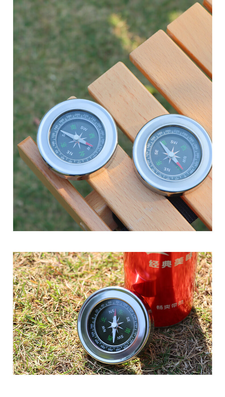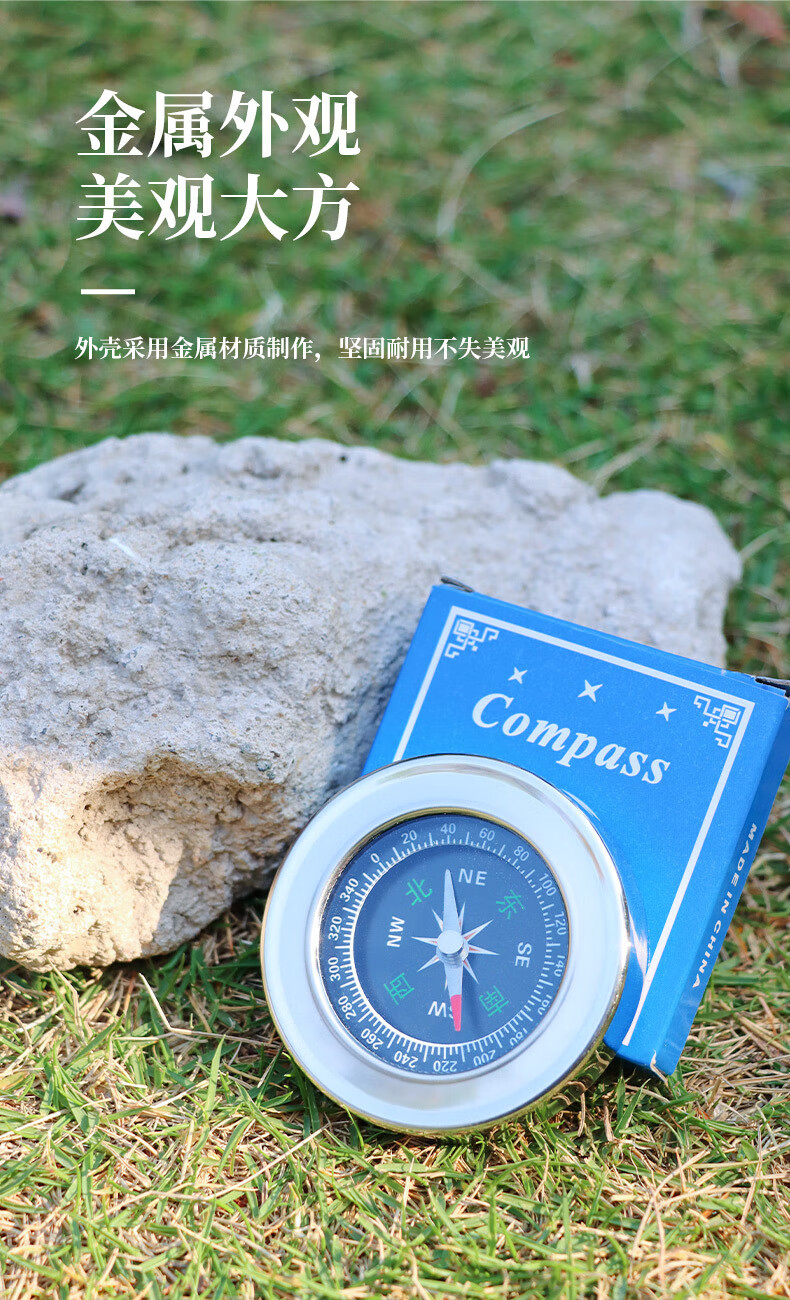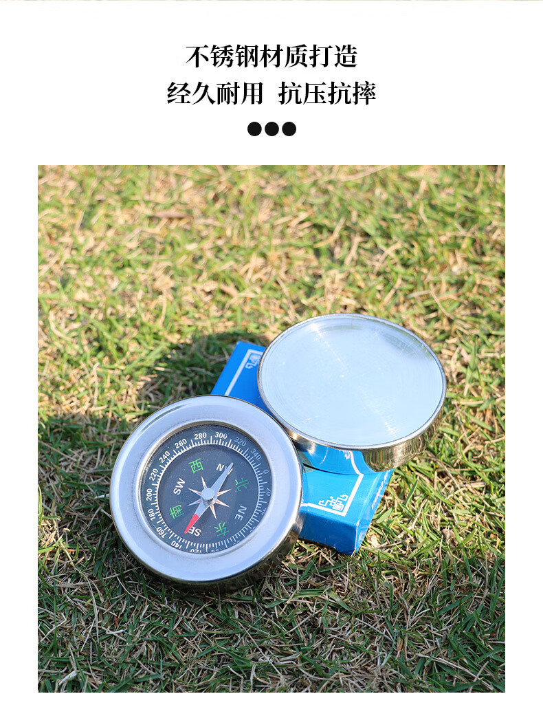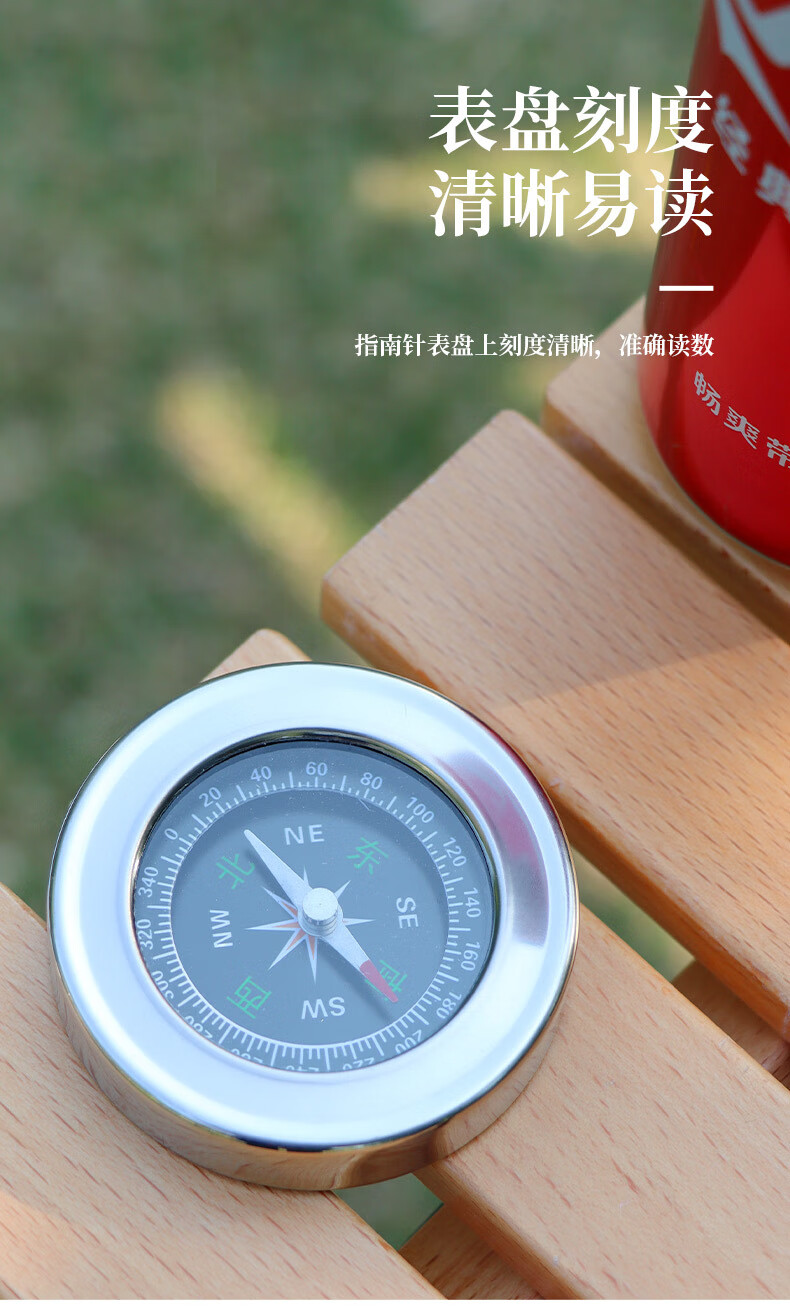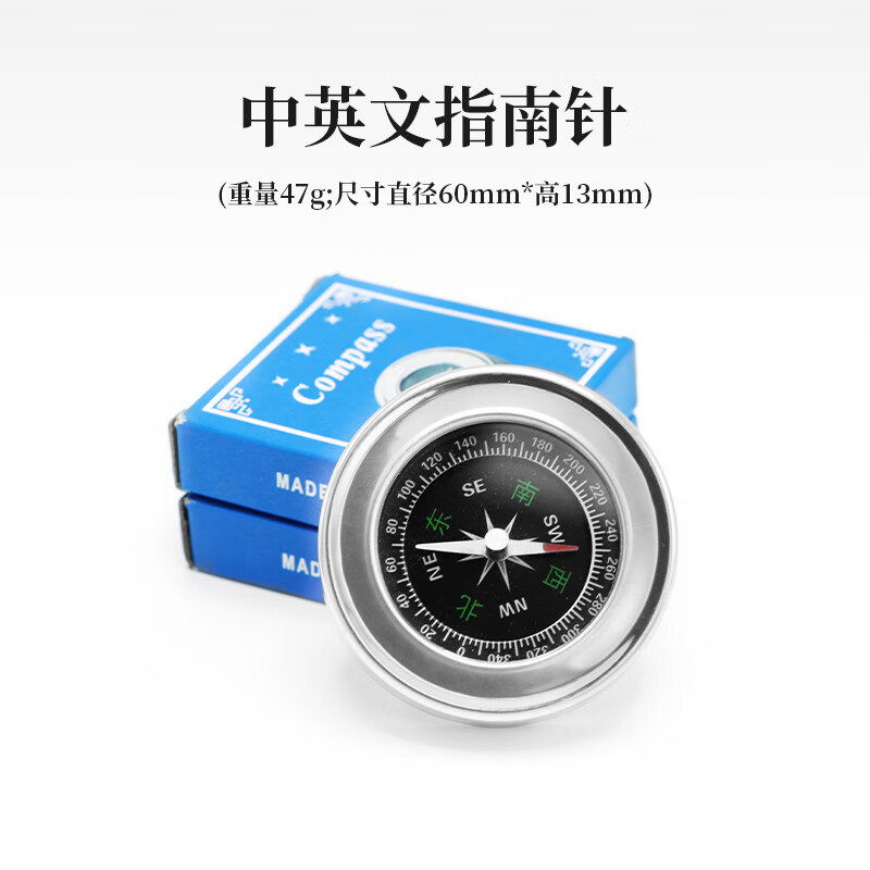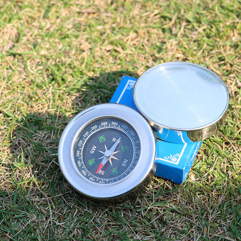 蒲恋指南针高精度 抗强磁 中文指北针多功能不锈钢户外防水登山探险 升级款银色 60mm