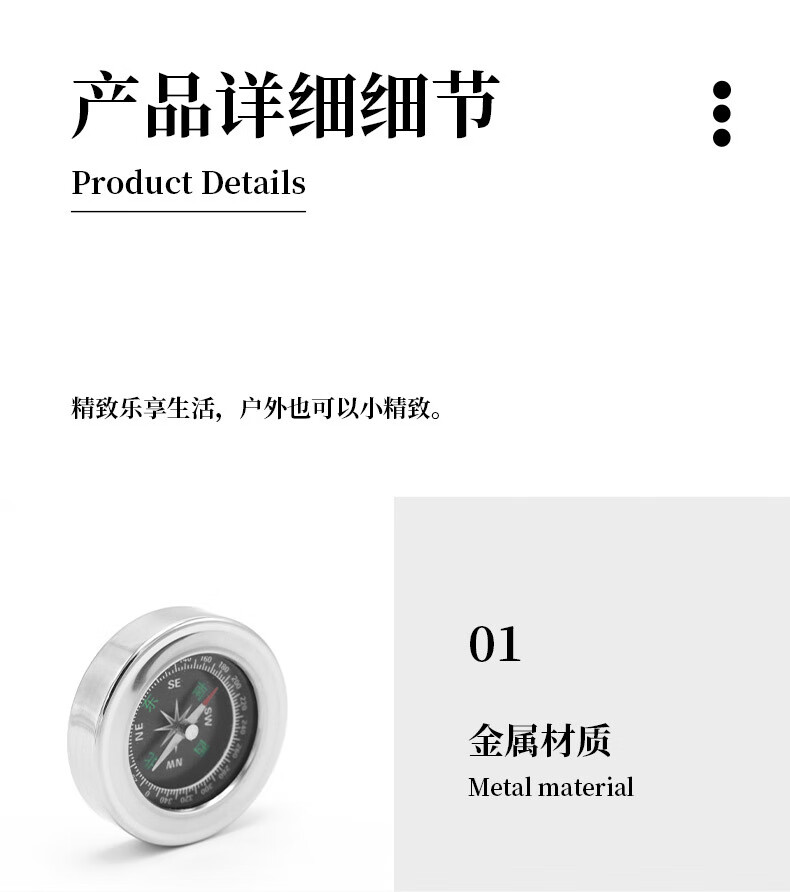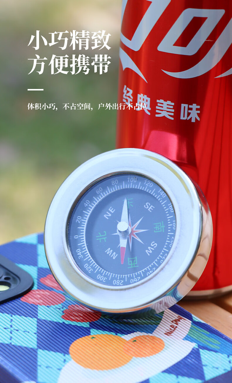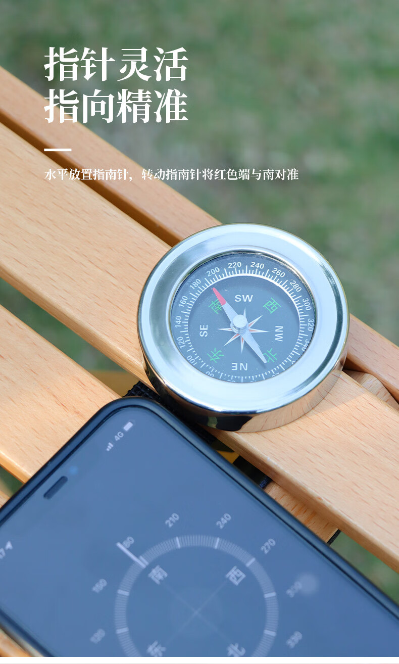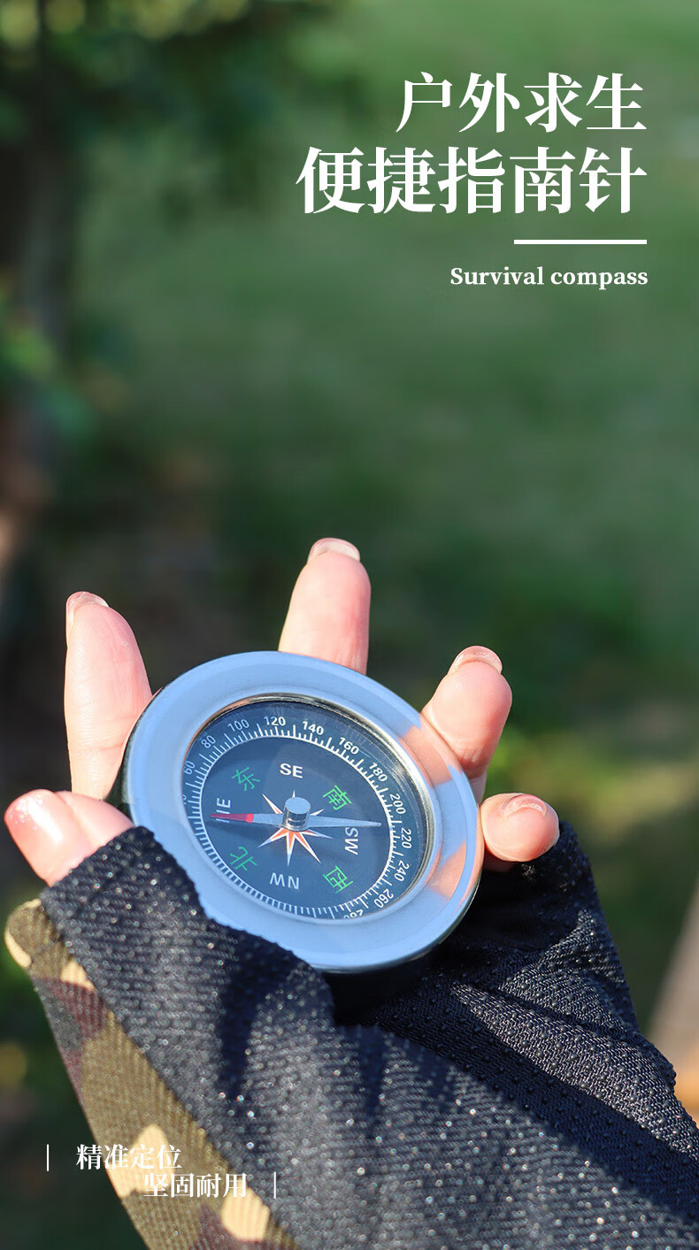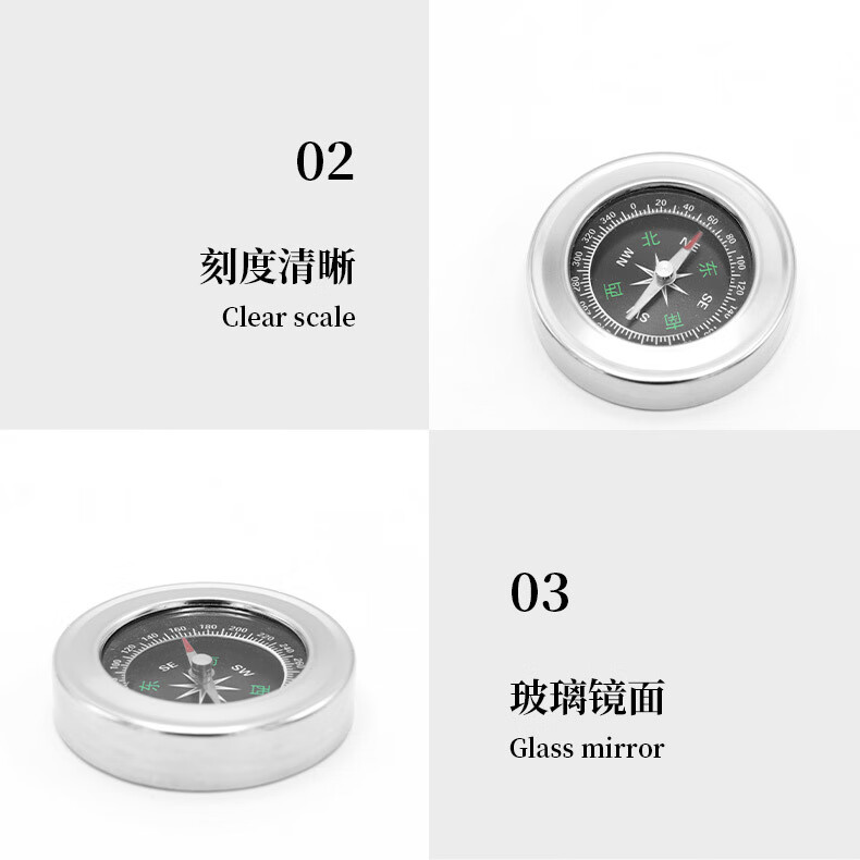 蒲恋指南针高精度 抗强磁 中文指北针多功能不锈钢户外防水登山探险 升级款银色 60mm