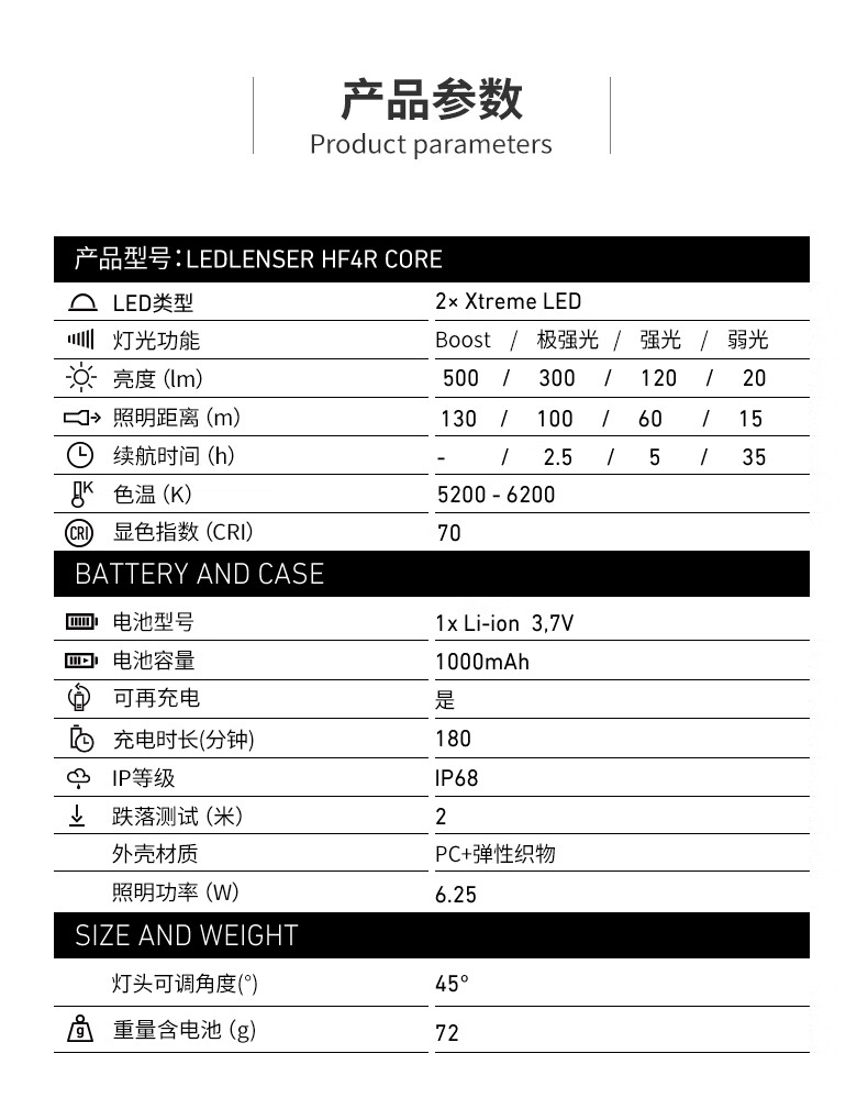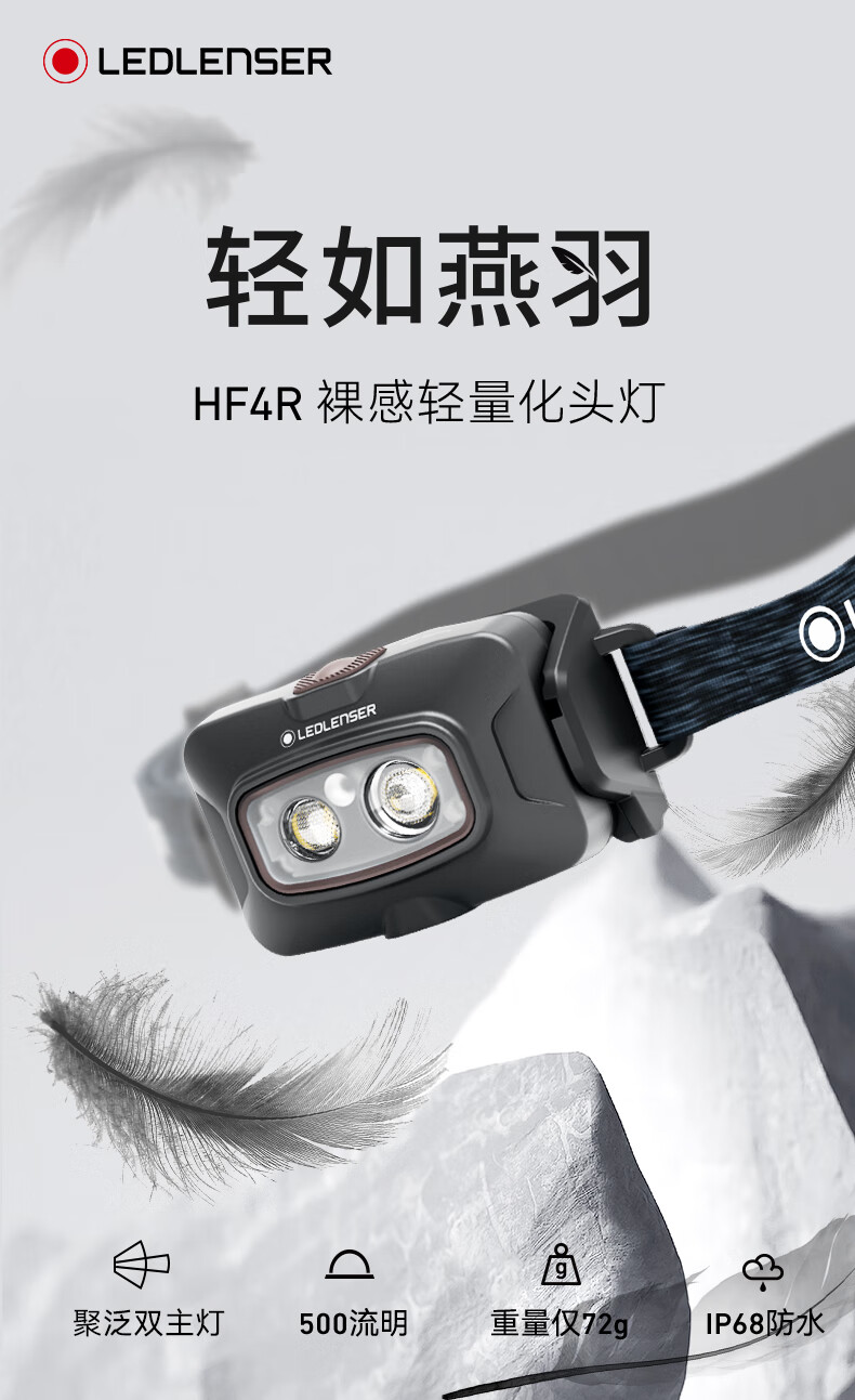 LEDLENSER莱德雷神HF4R强光超长续航头灯可充电夜钓骑行户外灯IP68防水