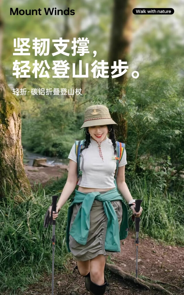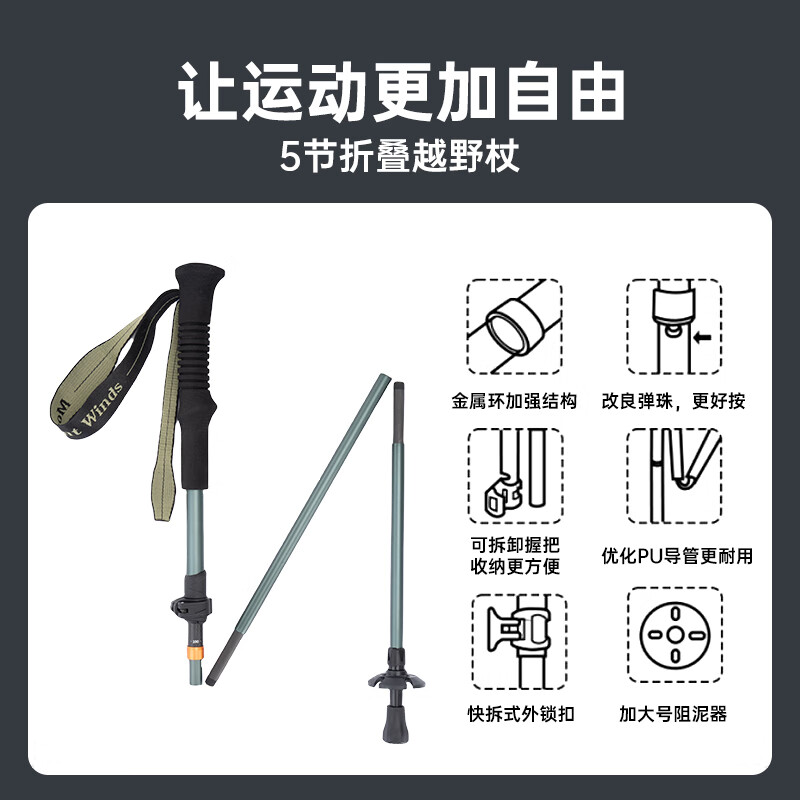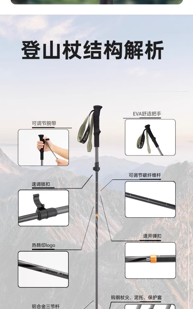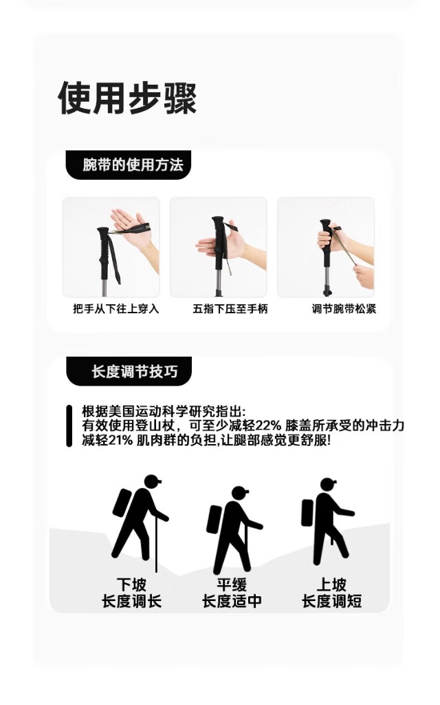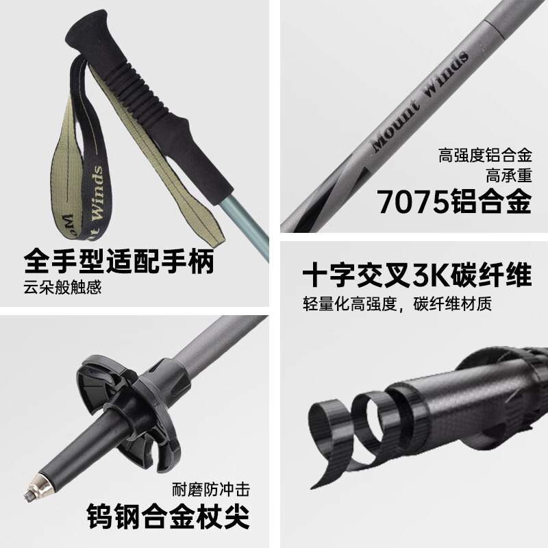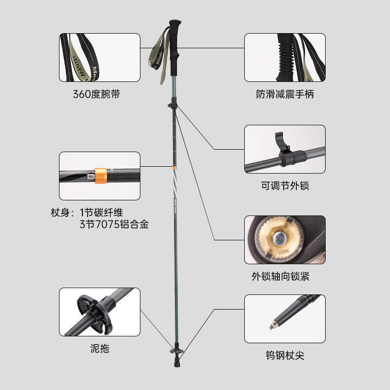 魔铁(MOTIE)登山杖折叠伸缩户外登山杖防身四节徒步行走拐杖儿童老人爬山杖 G101黑直柄【基础款】