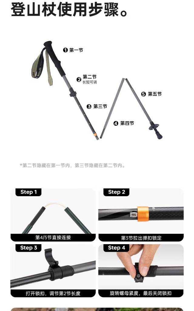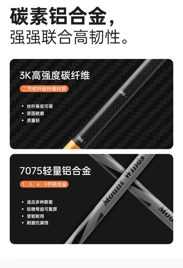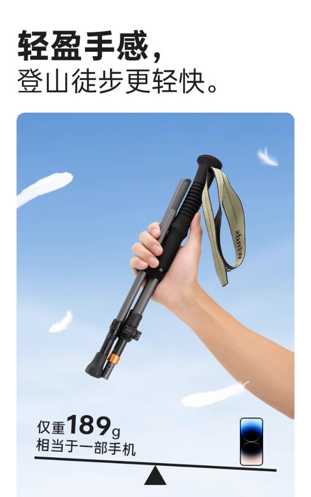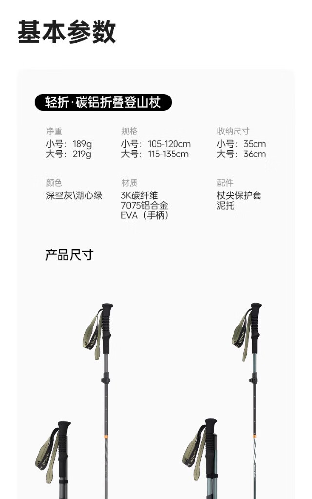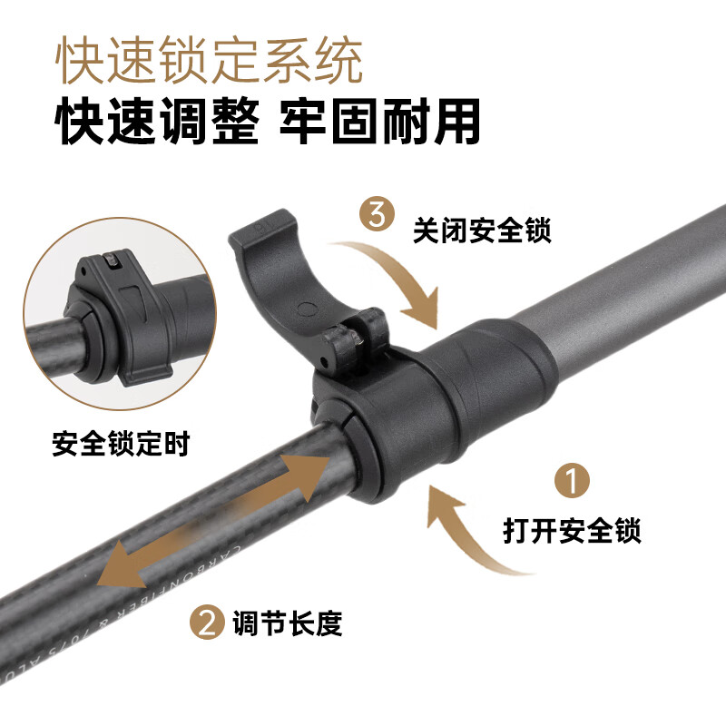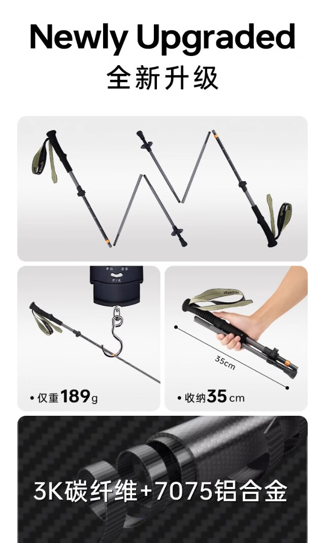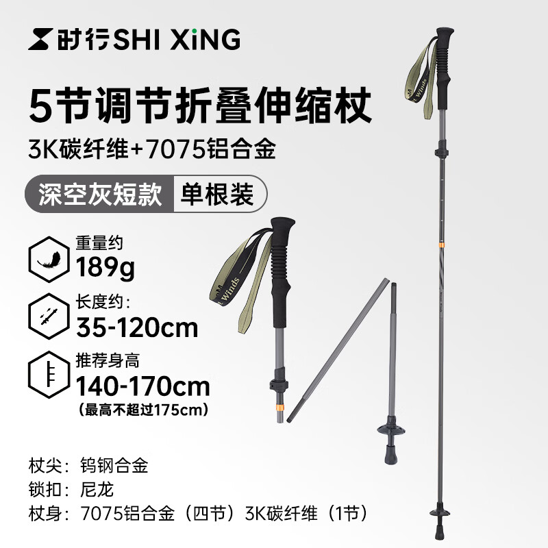 时行铝合金徒步手杖碳纤维超轻登山杖折叠式外锁伸缩登山爬山棍装备 【碳+铝折叠杖】深空灰单根短款