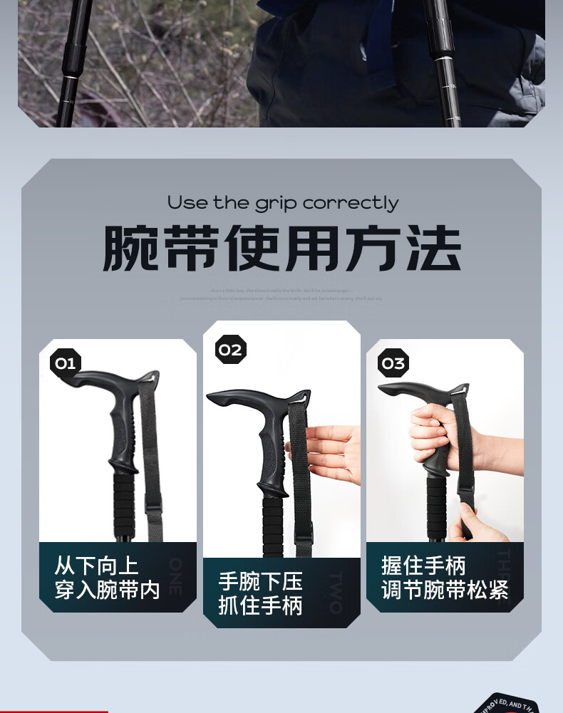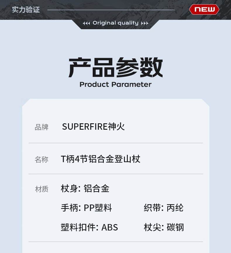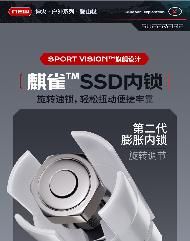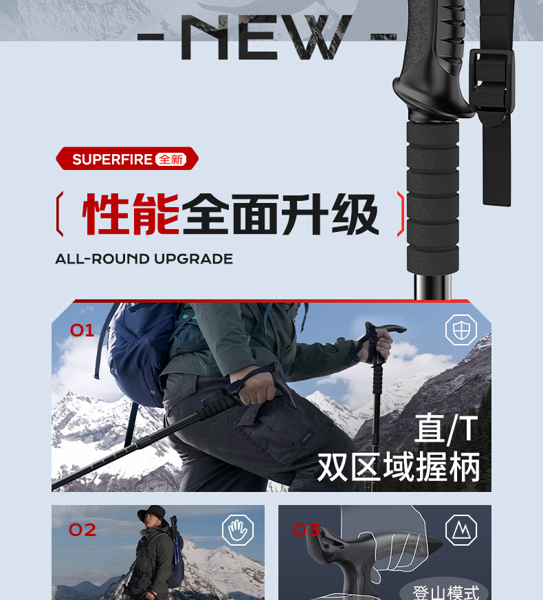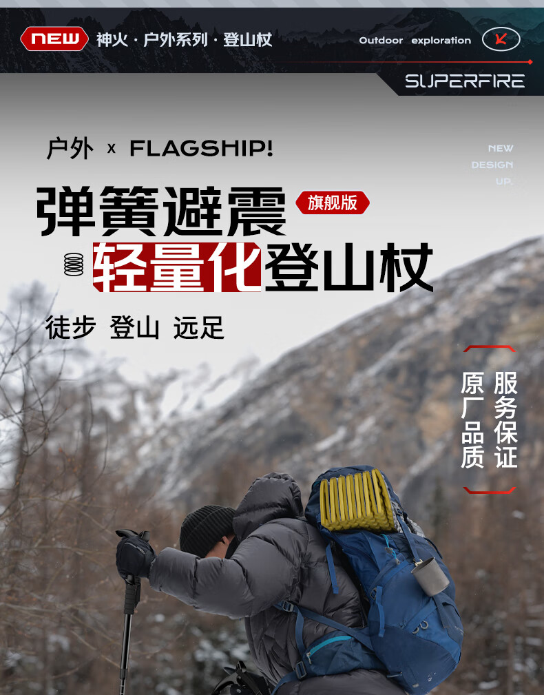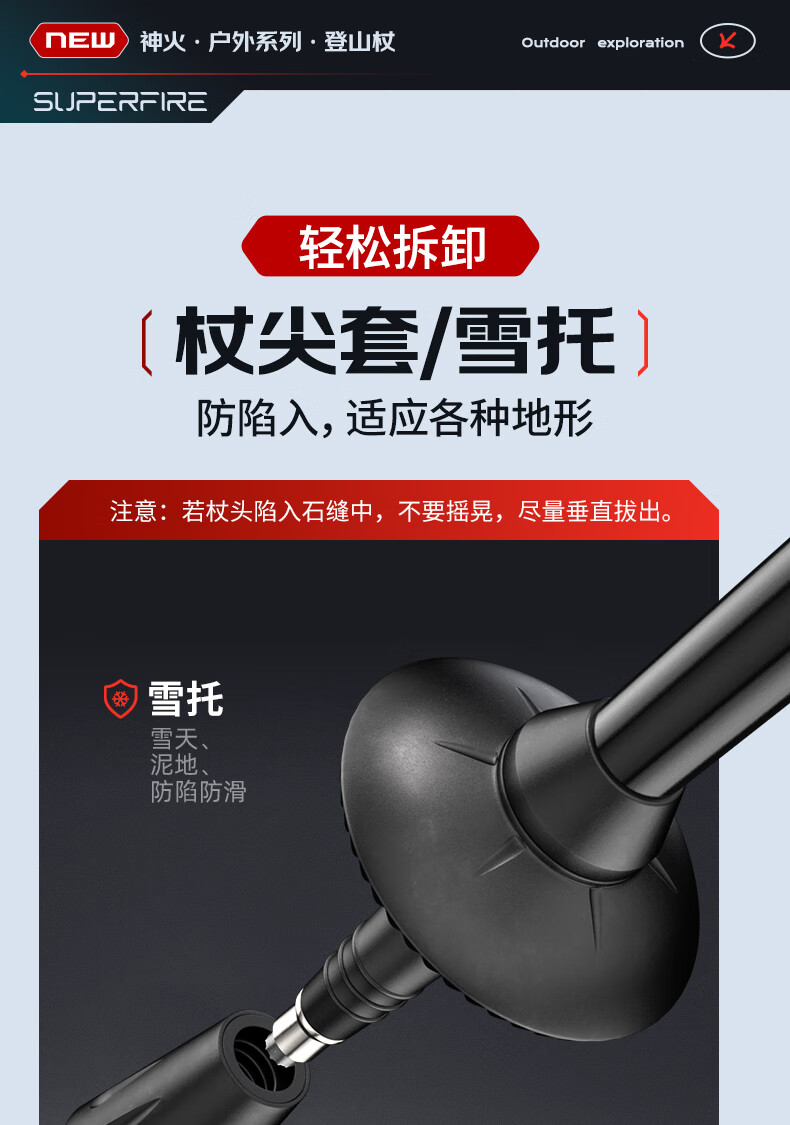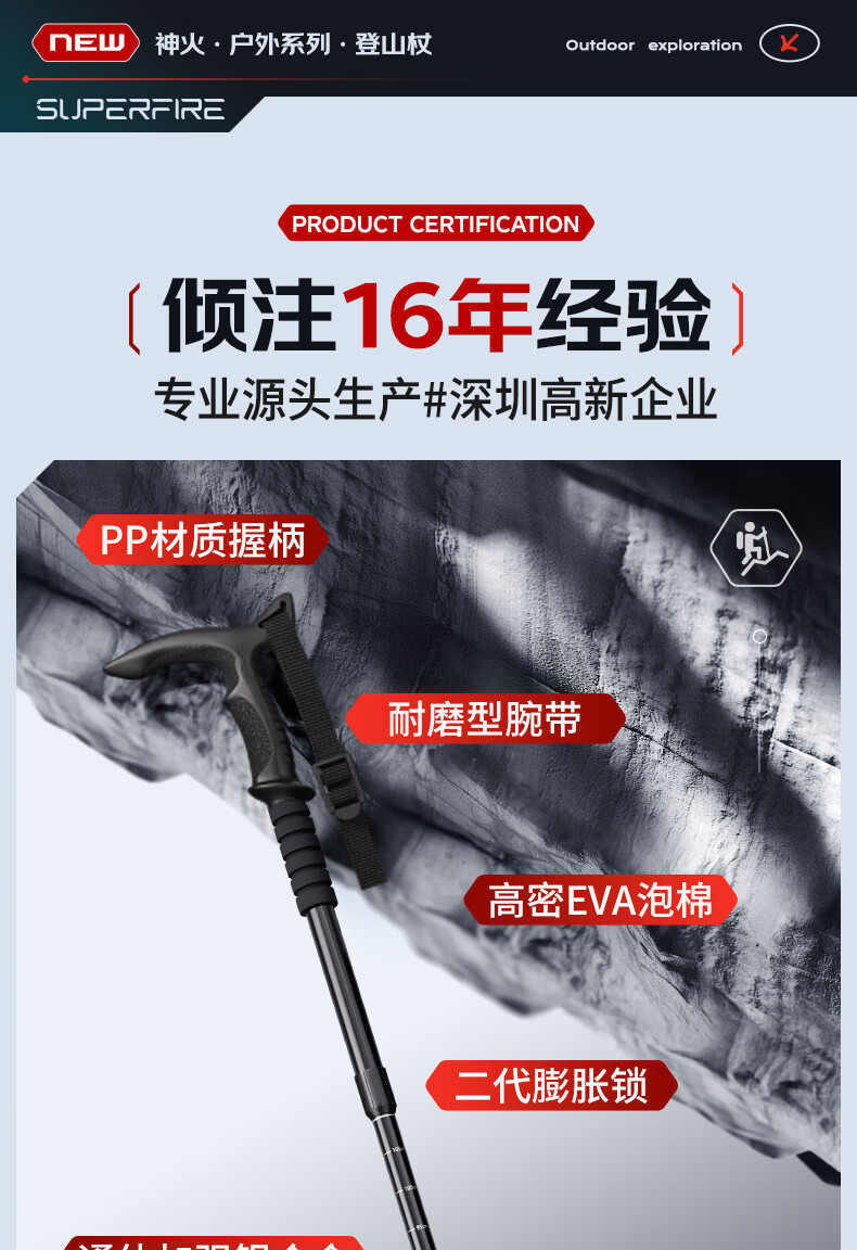 神火(SupFire)户外防身登山杖铝合金型老人超轻便防滑拐棍徒步健走爬山装备手杖