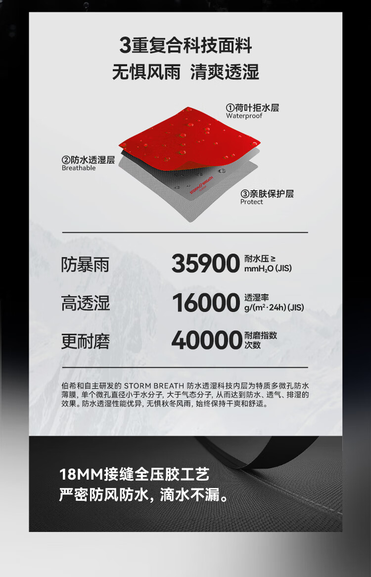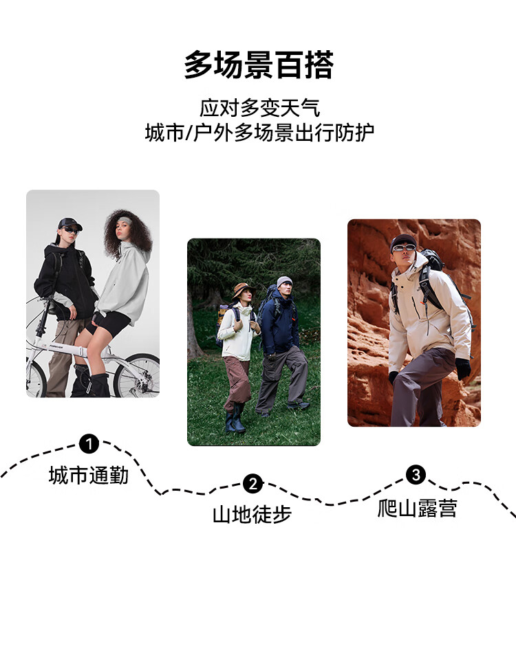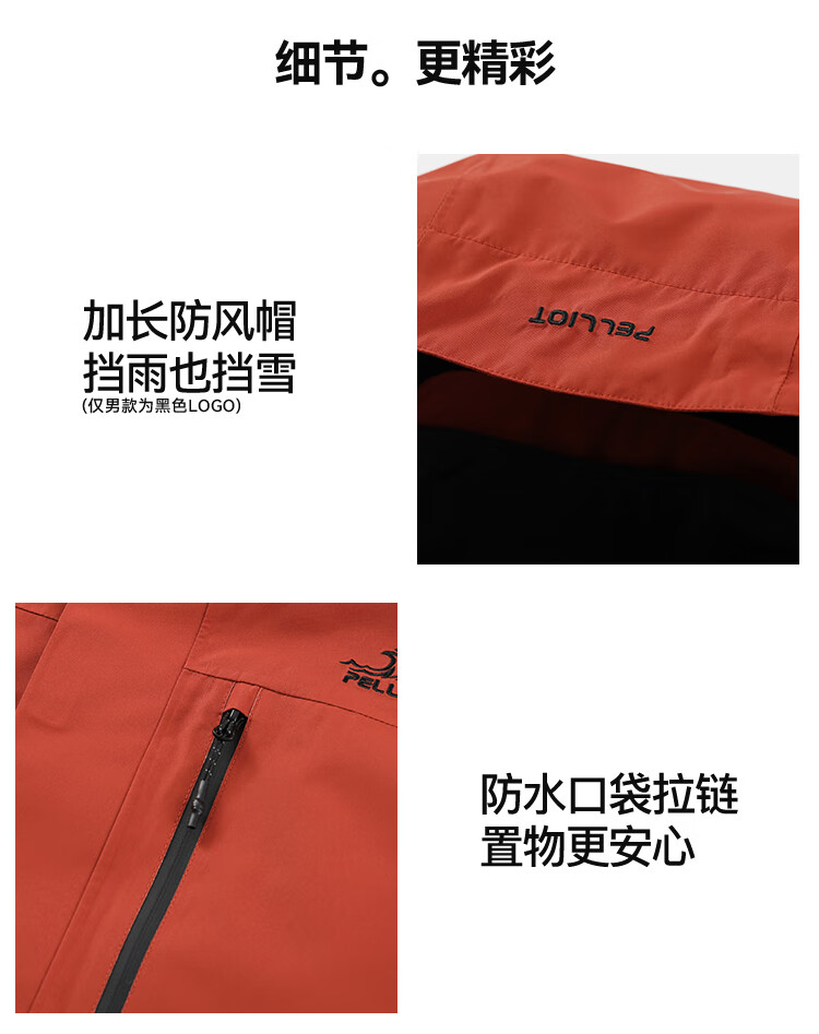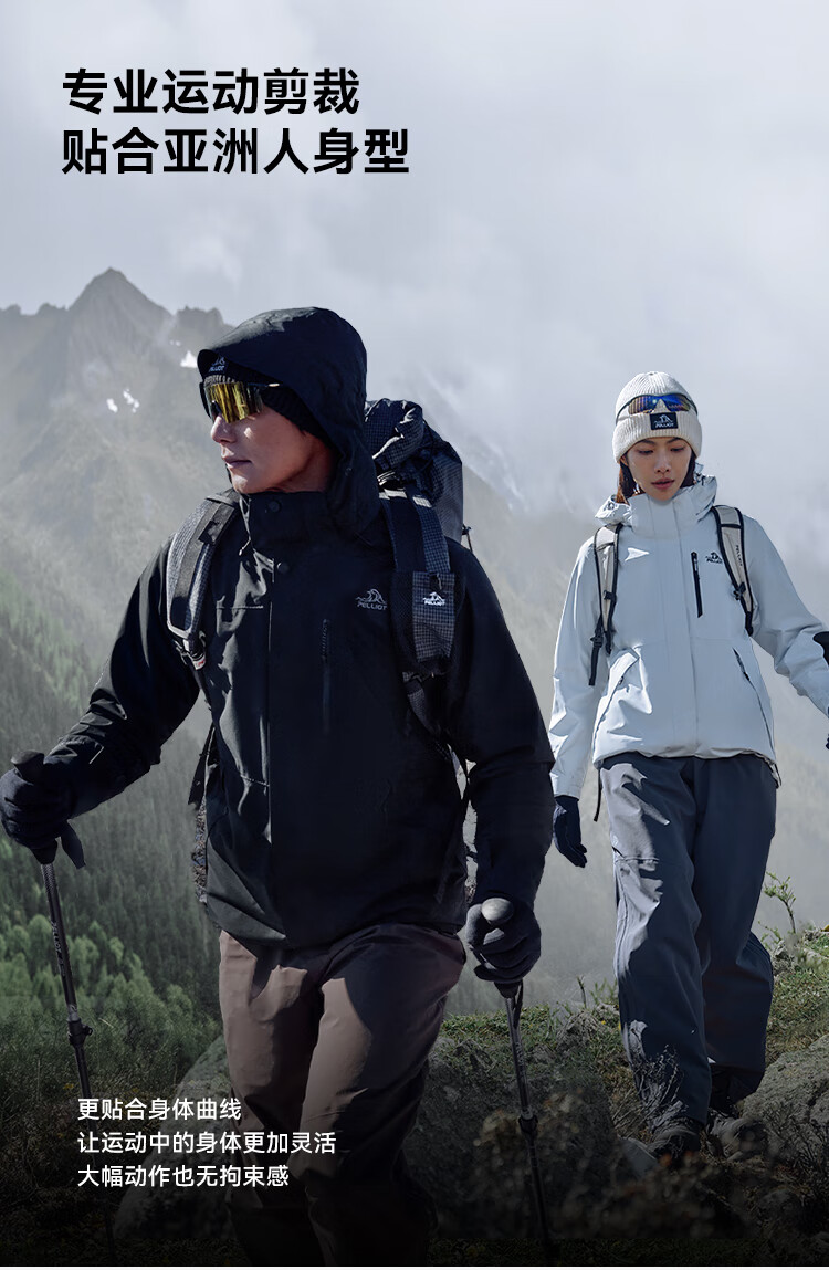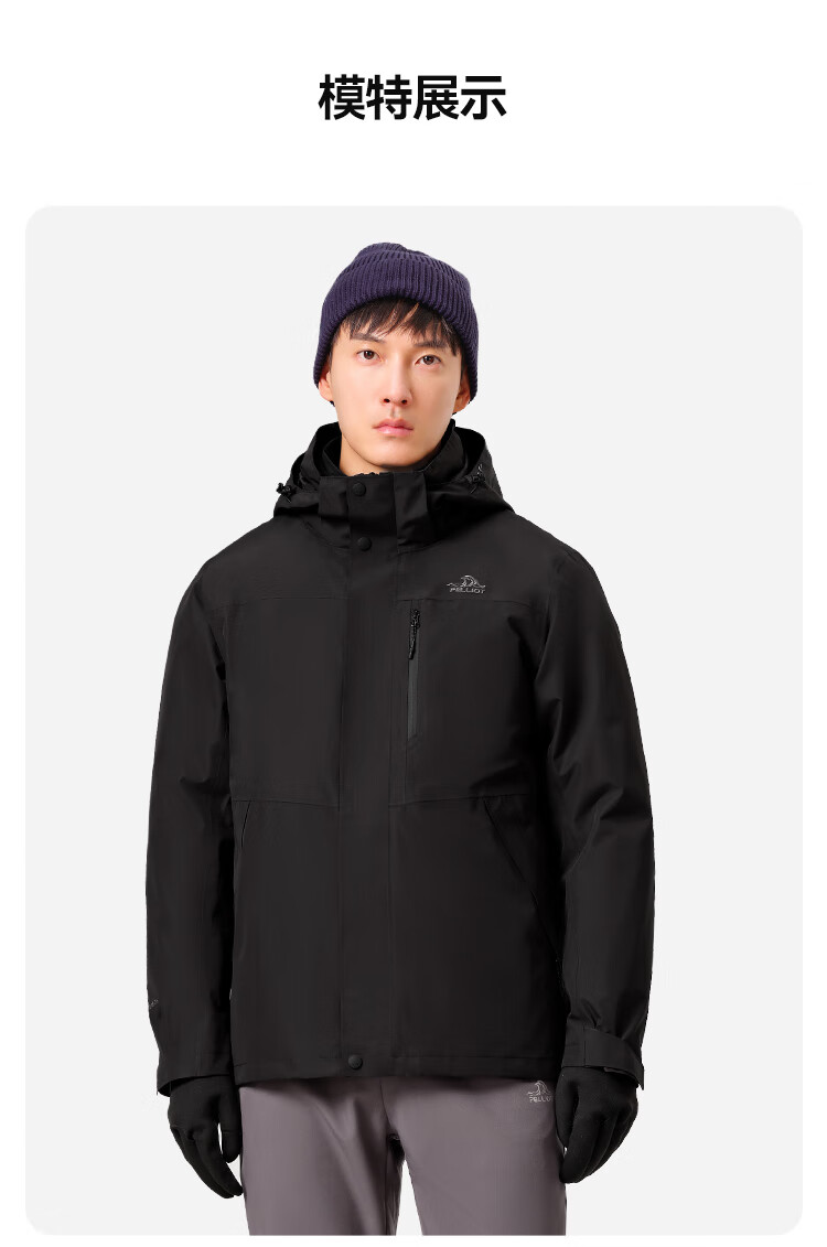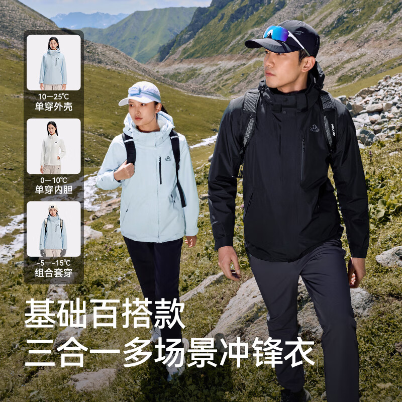 伯希和(Pelliot)[成毅同款]山野2.0冲锋衣男女三合一外套户外夹克11340105黑L