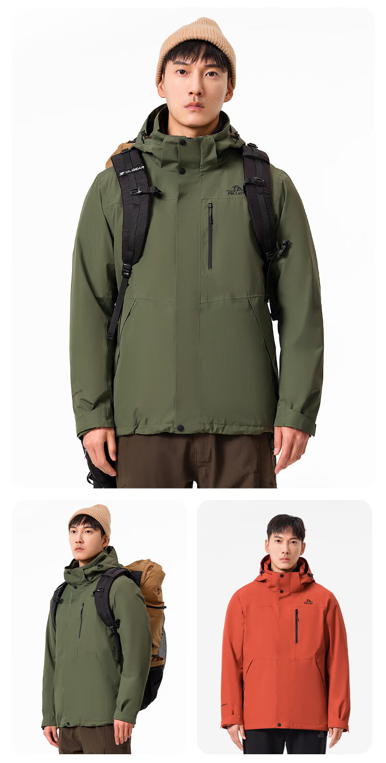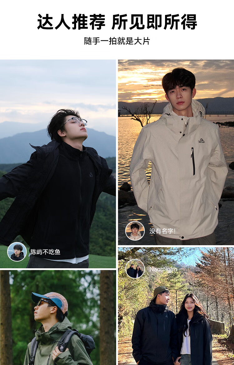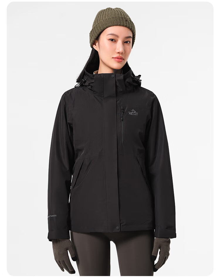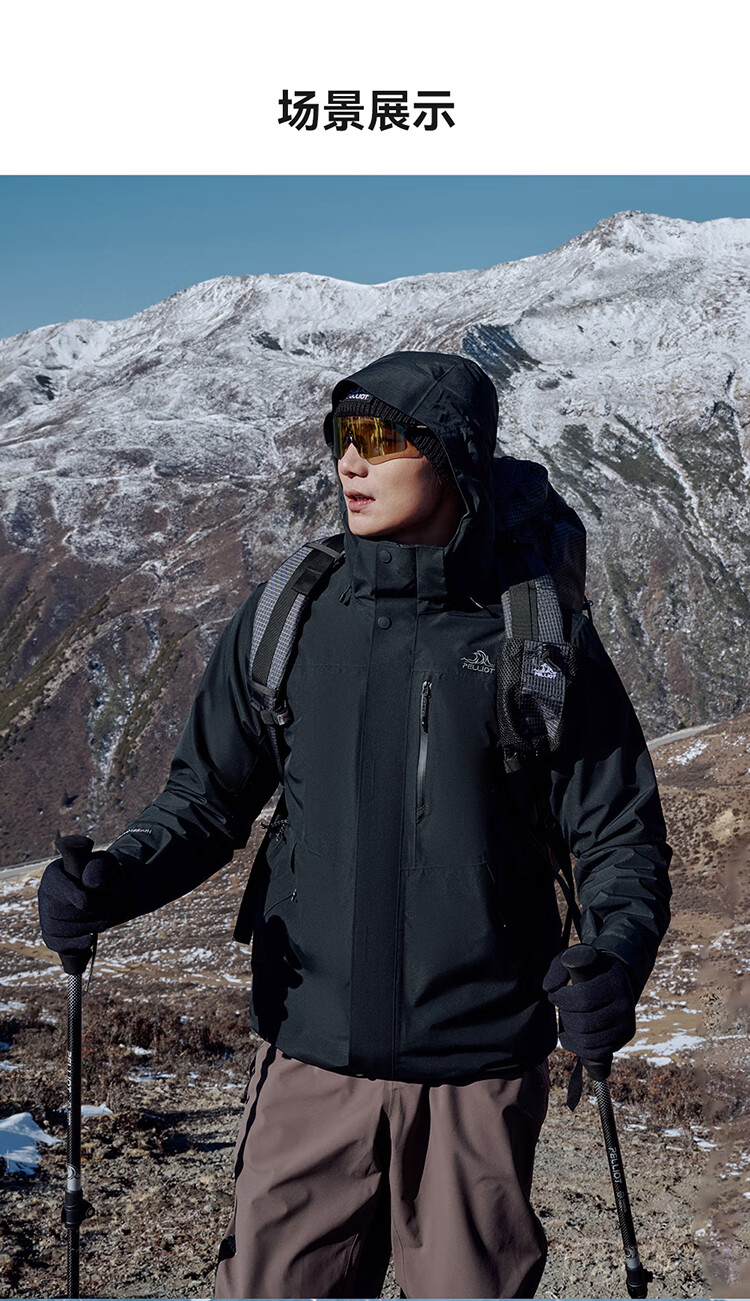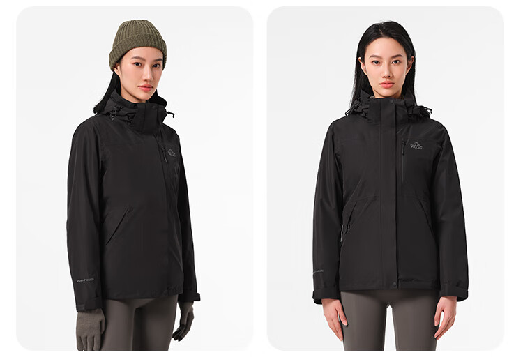 啄木鸟冲锋衣男女户外三合一外套春秋冬可拆卸内胆防风防水加厚夹克男士 黑色(春秋款) XL (建议120-140斤)