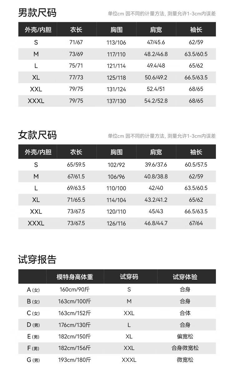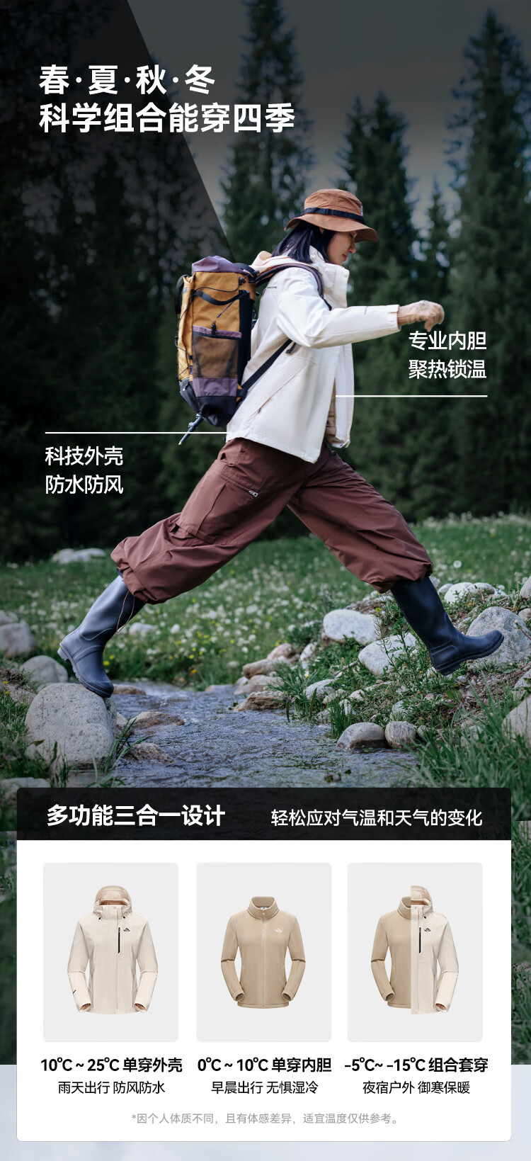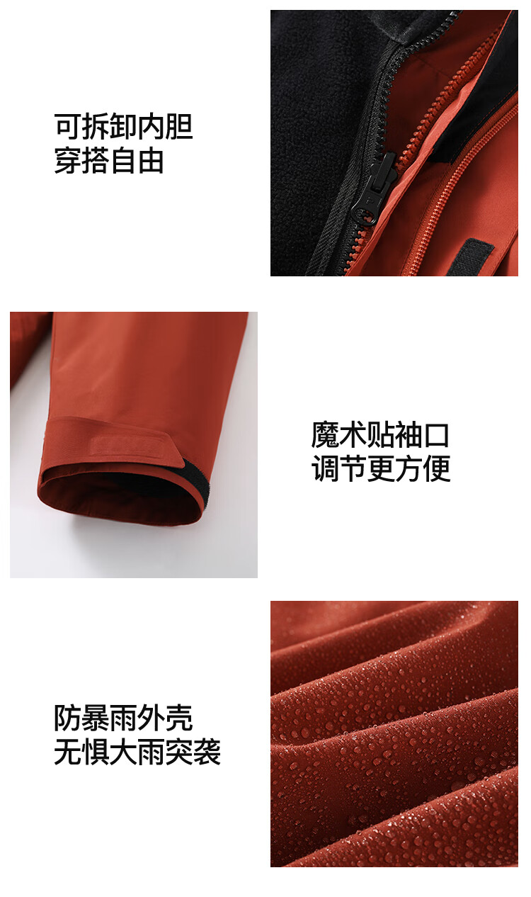 啄木鸟冲锋衣男女户外三合一外套春秋冬可拆卸内胆防风防水加厚夹克男士 黑色(春秋款) XL (建议120-140斤)