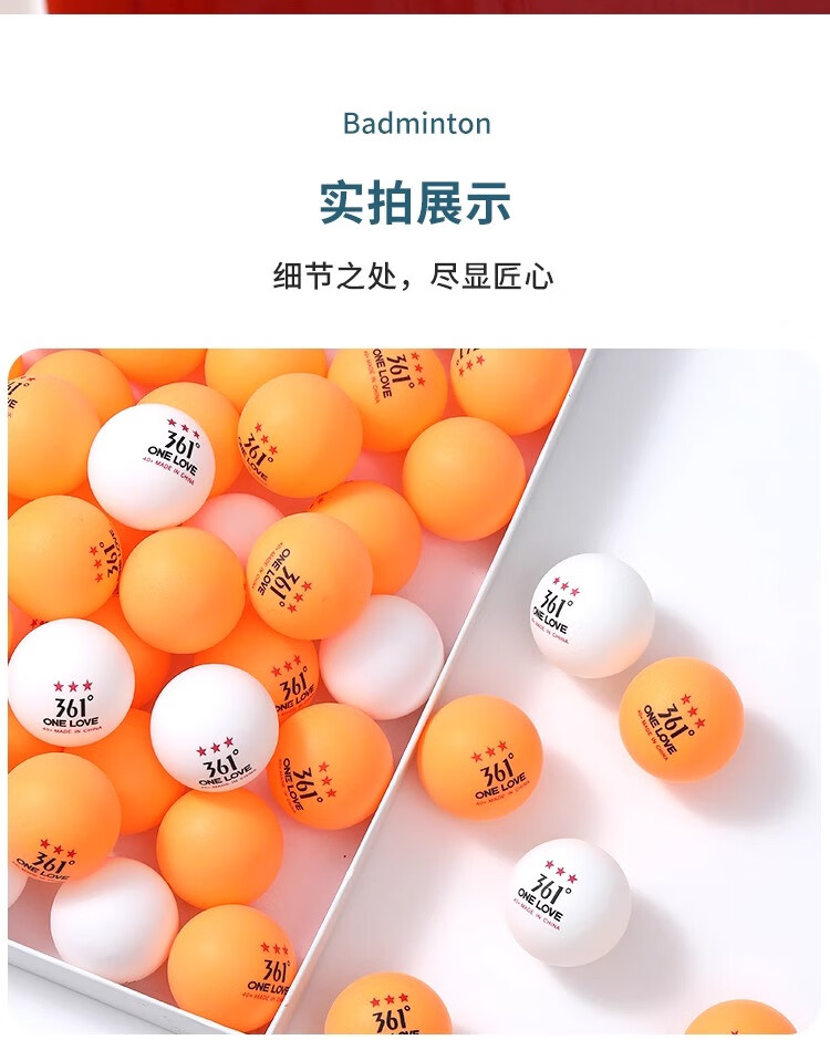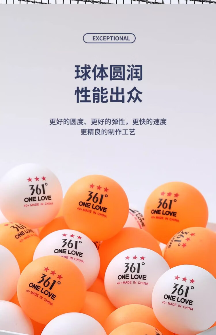 361°三星级乒乓球50只20只装专业耐打ABS新材料赛顶40+比赛训练用球 三星级【10只黄球】比赛训练