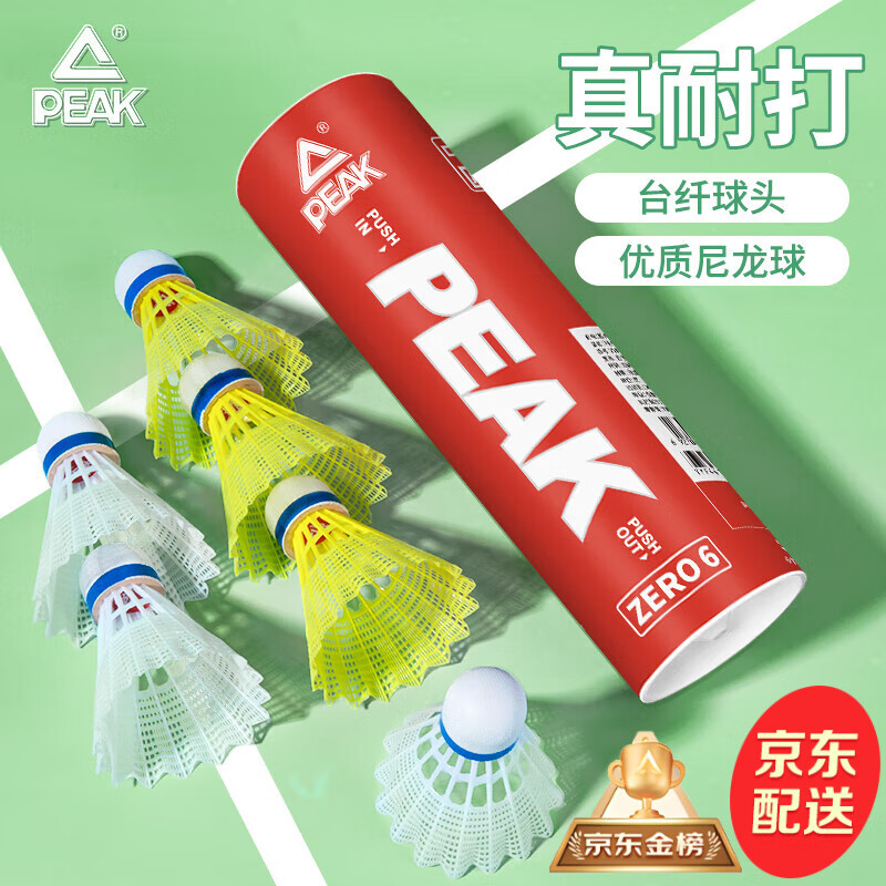 匹克(PEAK)尼龙羽毛球塑料超耐打室内室外专业训练尼龙球飞行稳定防风胶球 12只装【白+黄】耐打王 1筒