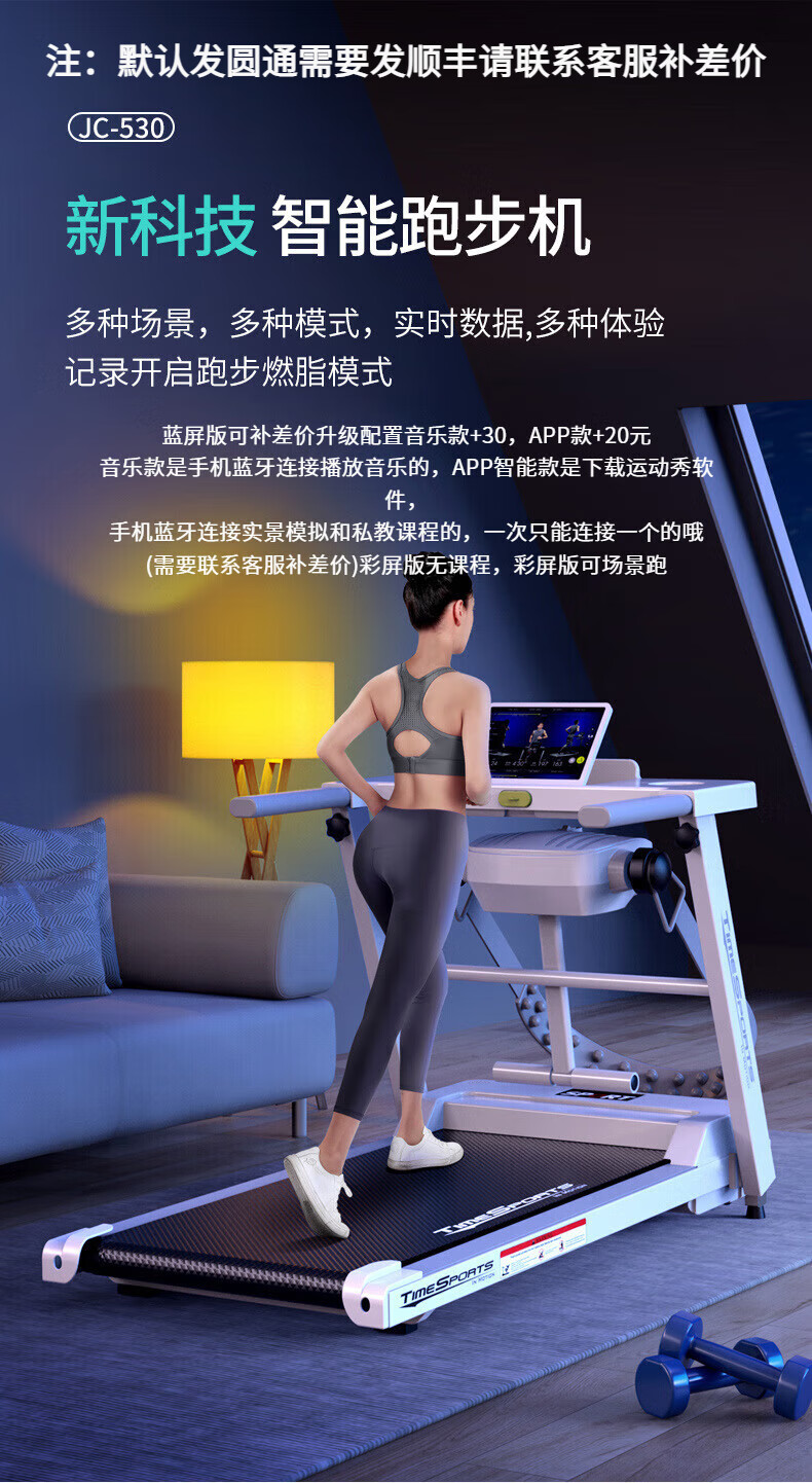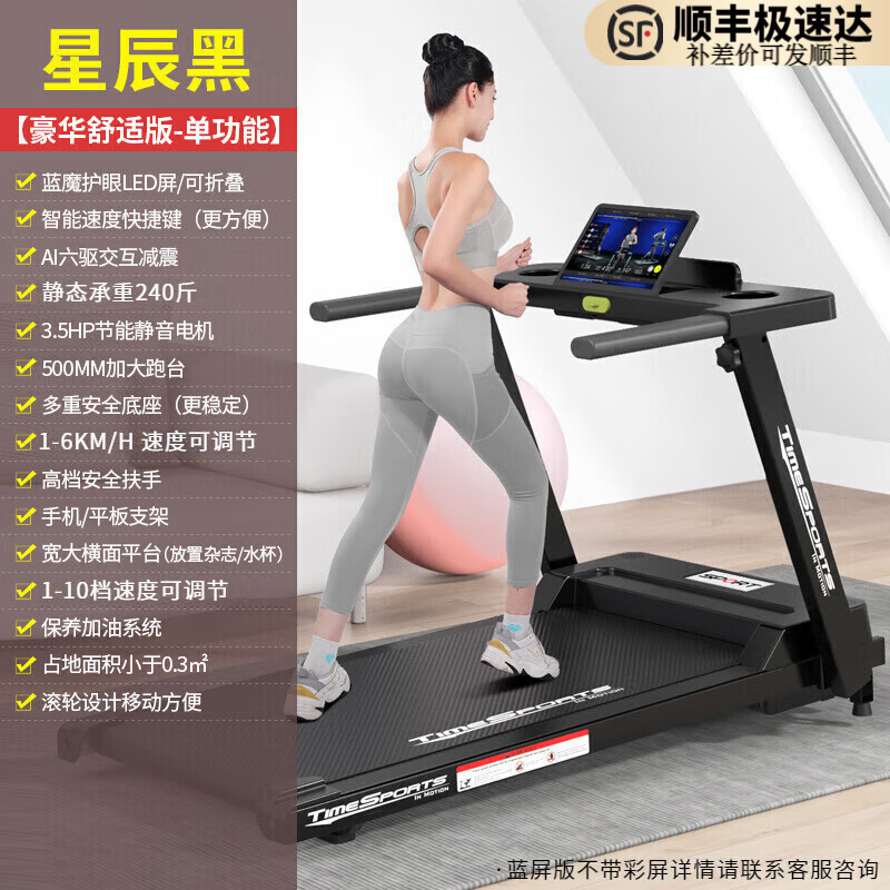 小米石跑步机家用款电动走步机智能折叠多功能健身器材 黑色(蓝屏单功能)屏幕可折叠
